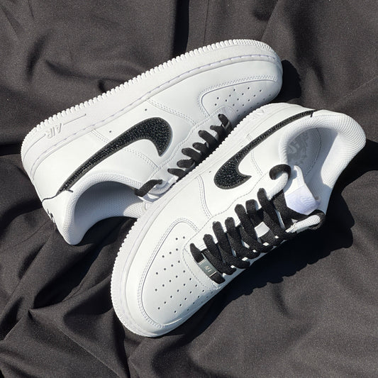BLACK AND WHITE CRYSTAL SWOOSH AF1